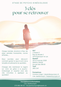 Le stage « 3 clés pour se retrouver » vous offre la possibilité de découvrir les outils de la psycho-kinésiologie sans détour et avec une toute grande intensité.